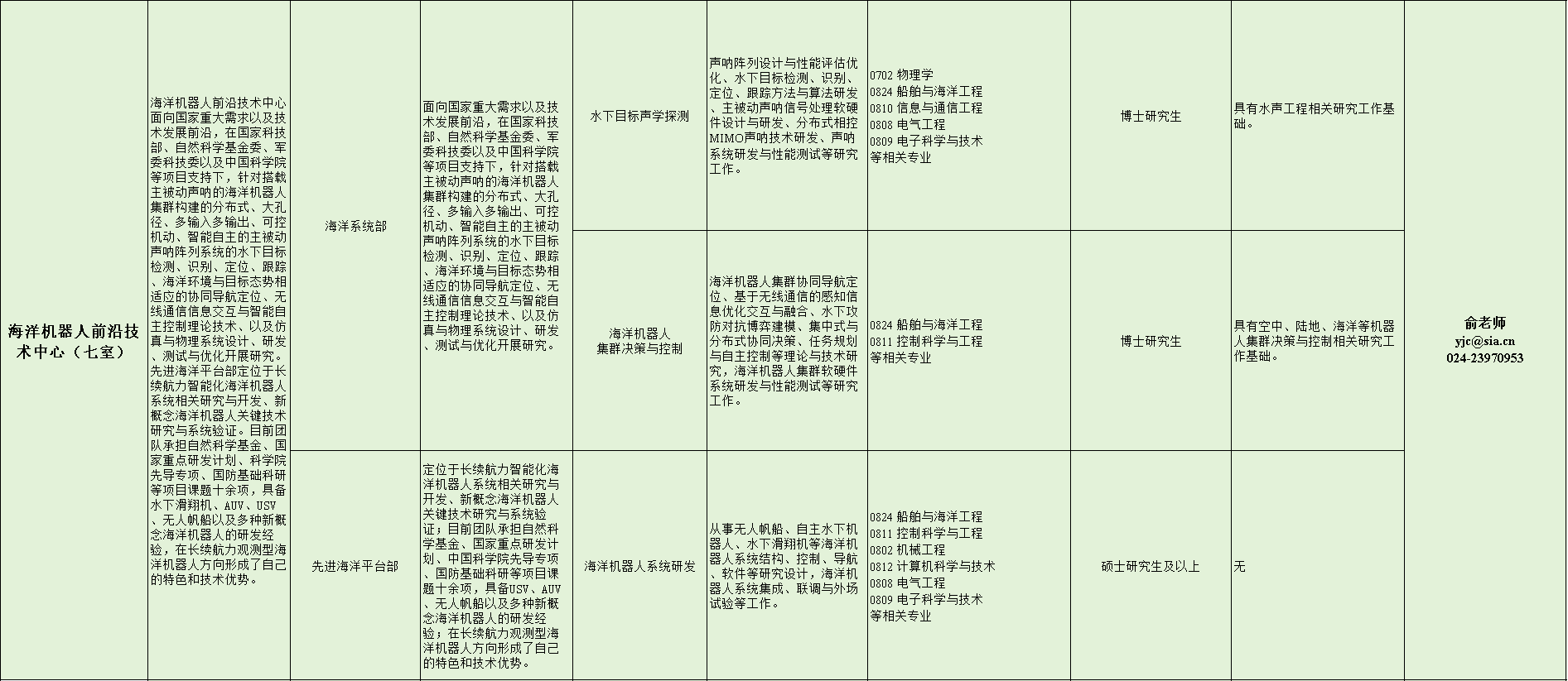 中国科研实验室沈阳自动化研究所2023-2024年招聘岗位需求